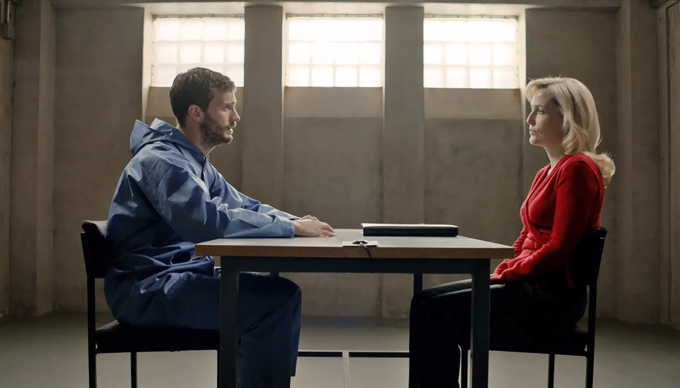 Widz od samego początku wie kim jest morderca. Jest nim Paul Spector – miejscowy psycholog (W tej roli Jamie Dornan), który ma dwa wcielenia. Z jednej strony jest przykładnym mężem i ojcem dwójki dzieci. Z drugiej, bezwzględnym i psychopatycznym mordercą kobiet. Obserwujemy jego losy od początku serialu, jednocześnie przyglądając się policyjnemu śledztwu. I tutaj pojawia się problem, bo o ile liczymy, że policja złapie tego drania to jednocześnie kibicujemy Spectorowi, gdyż jest on w zasadzie głównym bohaterem tego kapitalnego serialu. Oczywiście brzydzi nas jako bezduszny morderca, jednak jako ojciec i mąż wiedzie całkiem normalne życie, dlatego też życzymy mu dobrze, by nie ucierpiała jego rodzina.
