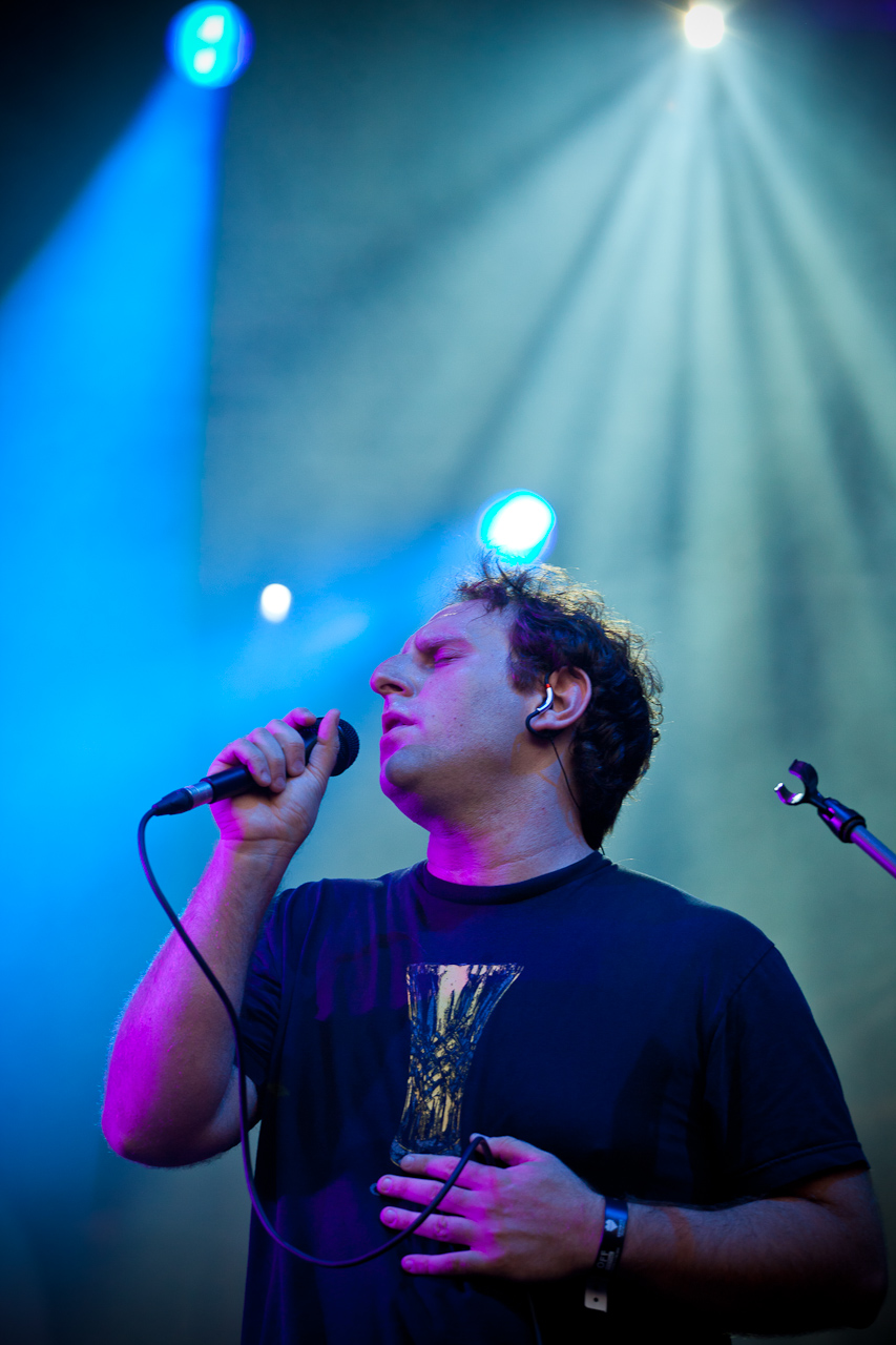 Chęć zobaczenia czegoś „innego” pokierowała mnie by przez chwilę zobaczyć prawdziwy, progresywny, techniczny metal w wykonaniu Meshuggah, jednak na dłuższą metę nie zniósłbym tego natężenia agresji i hałasu w moich uszach. O 23:00 byłem już pod sceną eksperymentalną, gdzie miała wystąpić ciekawostka dnia czyli Omar Souleyman. Namiot napełnił się po brzegi (standardowo), wszyscy byli ciekawi co zaprezentuje Syryjczyk. Nawet kolesie z Junior Boys, którzy występ kręcili obok mnie. Koleś miał własnego konferansjera!!!, który w języku angielskim zapowiedział występ gwiazdy prosto z Bliskiego Wschodu. Wspomagany przez jednego muzyka od „czarnej roboty” Omar kręcił się po scenie i po prostu dawał „czadu”. Ludzie świetnie zareagowali. Hity z Jazeraa Nights brzmiały świetnie, że trudno było być obojętnym na to co się dzieje. Zwłaszcza, że parkietowa podłoga falowała i uginała się pod napływem tańczącej i skaczącej publiki. Ufff, to był kolejny świetny i niezapomniany występ. Tuż po północy byłem już na świeżym powietrzu, gdzie przez najbliższą godzinę chłonąłem dźwięki grane przez Mogwai. To był ich drugi występ na Offie i wydaje mi się, że lepiej się zaprezentowali niż w 2008 roku, jednak może to dlatego, że „Hardcore Will Never Die, But You Will” jest lepszą płytą niż „Hawk is Howling”? Jak zwykle ludzie narzekali, jednak należy pamiętać, że to zespół specyficzny i to nie tylko dlatego, że nie mają wokalu. Setlista była idealna, nie zabrakło Mogwai Fear Satan czy też Haunted by Freak jak i najfajniejszych piosenek z nowej płyty (Rano Pano chociażby). Na koniec wpadłem na początek Low, który grał koncert dedykowany Andy’emu Kotowiczowi z Sub Popu, mimo, że grali fajnie to jednak zmęczenie wygrało i tym samym pierwszy dzień festiwalu dla mnie się skończył.